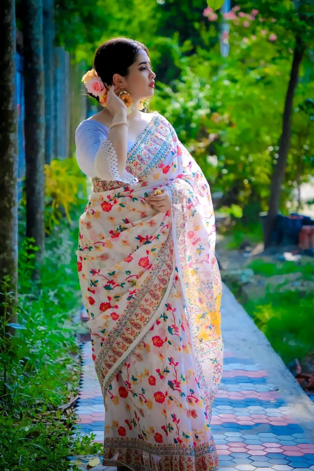 ভাইরাল স্কিন পিন্ড শাড়ি কোয়ালিটি ১০০% ভালোটা টারসেল লাগানো থাকবে সেম টু সেম