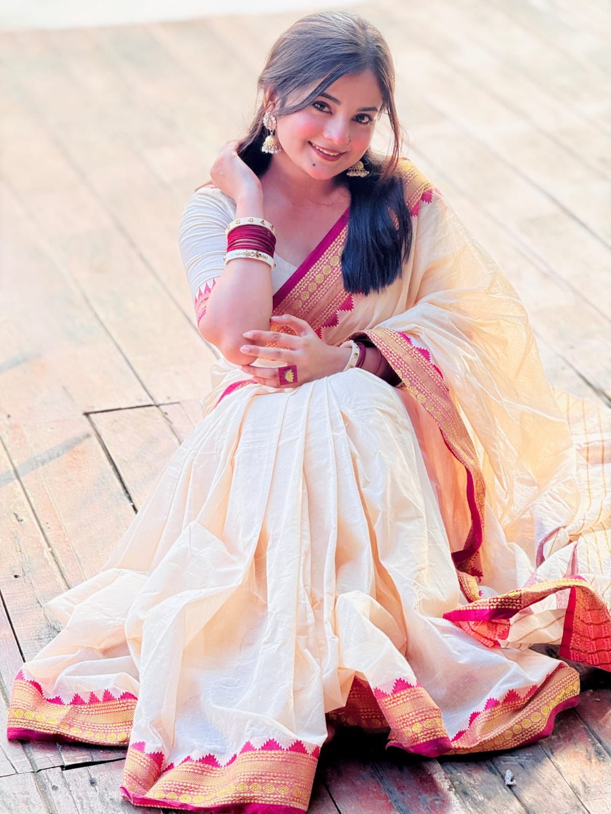 শাড়ির লাস্ট অংশ থেকে ব্লাউজ কেটে নিতে হবে